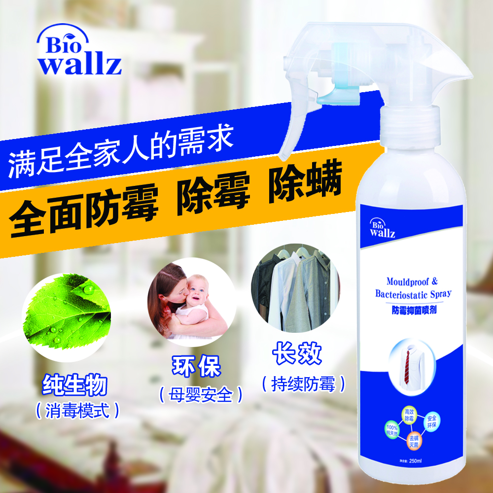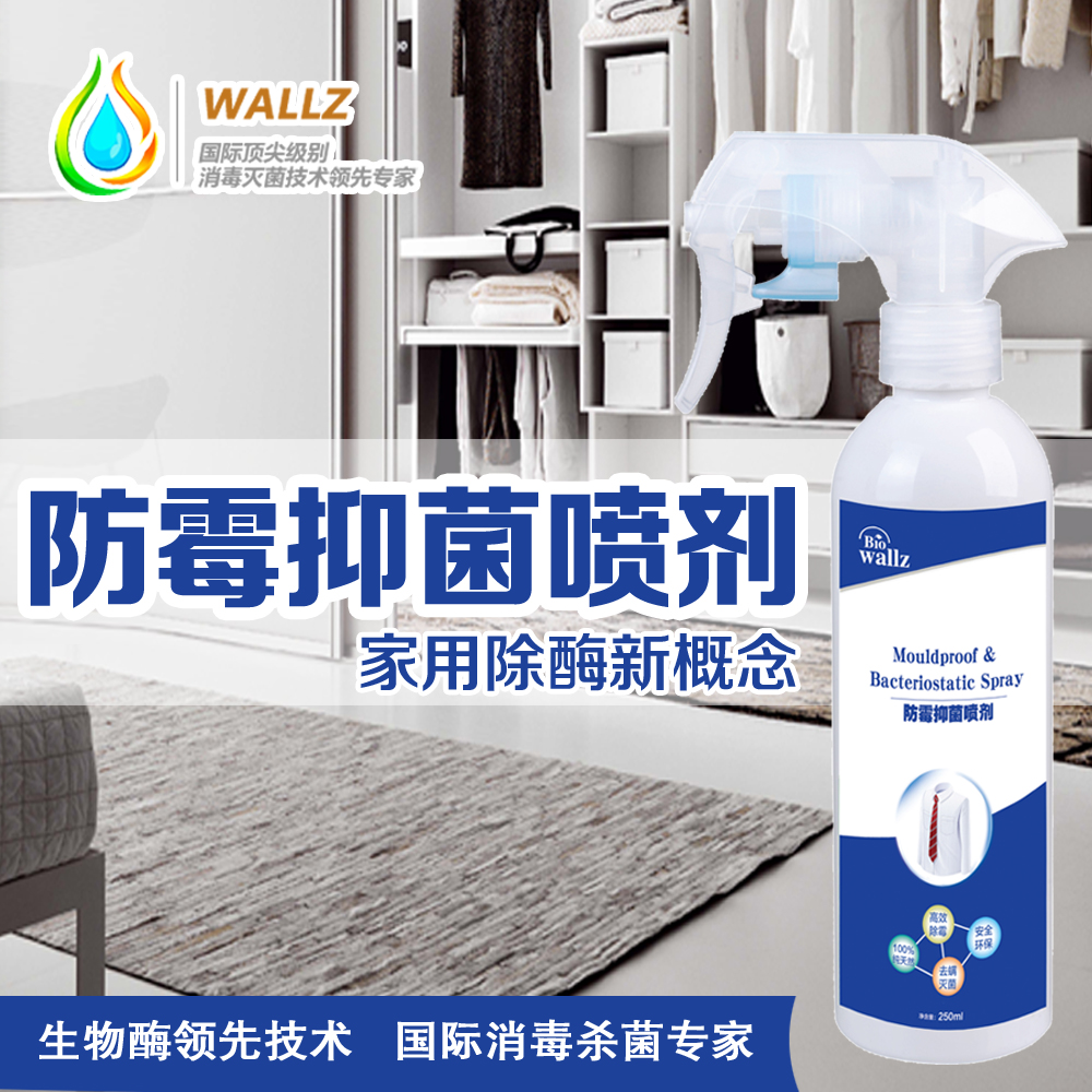 wallz 衣物防霉抗菌噴霧,具有高效防霉以及廣譜抗菌的功效,對多種細菌、病毒、真菌都具明顯抗菌效果 。本產品采用生物消毒模式,天然環保配方,安全無毒,無任何異味、無腐蝕性,對衣物等無任何損傷。